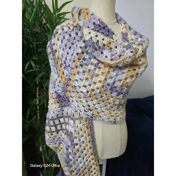 Perfect for layering, this crochet shawl pairs beautifully with casual or dressy outfits. Drape it over your shoulders or wrap it around for extra coziness.
