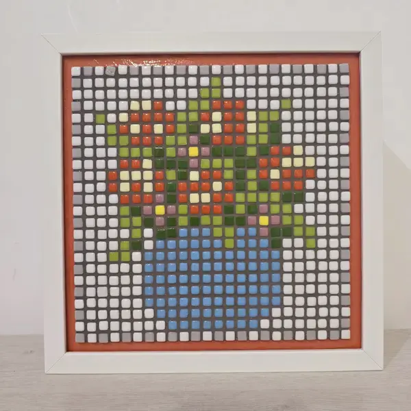 This Pixel Flower Mosaic Wall Art is a celebration of color and creativity. Created with tiny 8x8mm glass tiles and grouted in a smooth grey finish, this art piece captures the charm of flowers in a unique pixelated form.